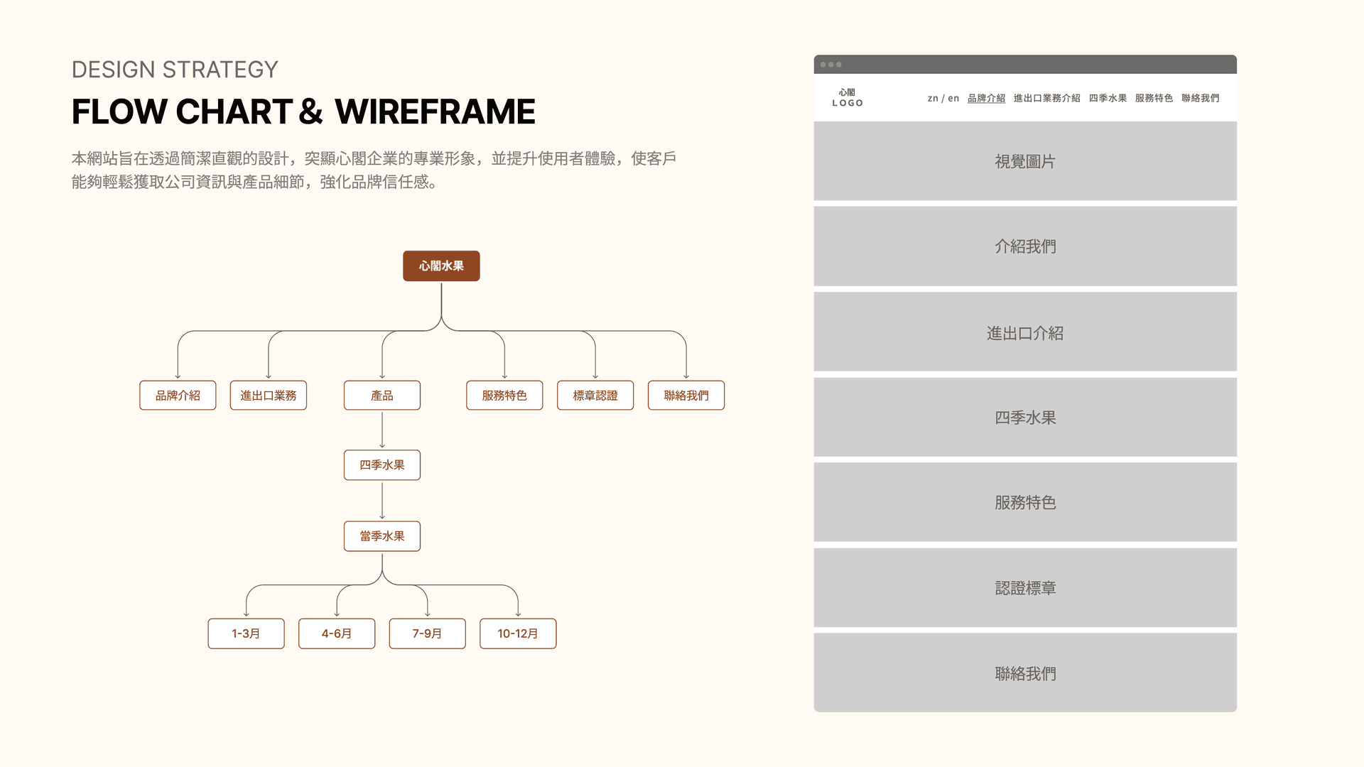 - 品牌故事與價值傳達:在網站上突出展示心閣企業有限公司的專業和承諾,強調他們對品質控制和產品新鮮度的承諾。可以透過一個關於我們的頁面來傳達公司的背景故事、價值觀和獨特之處。