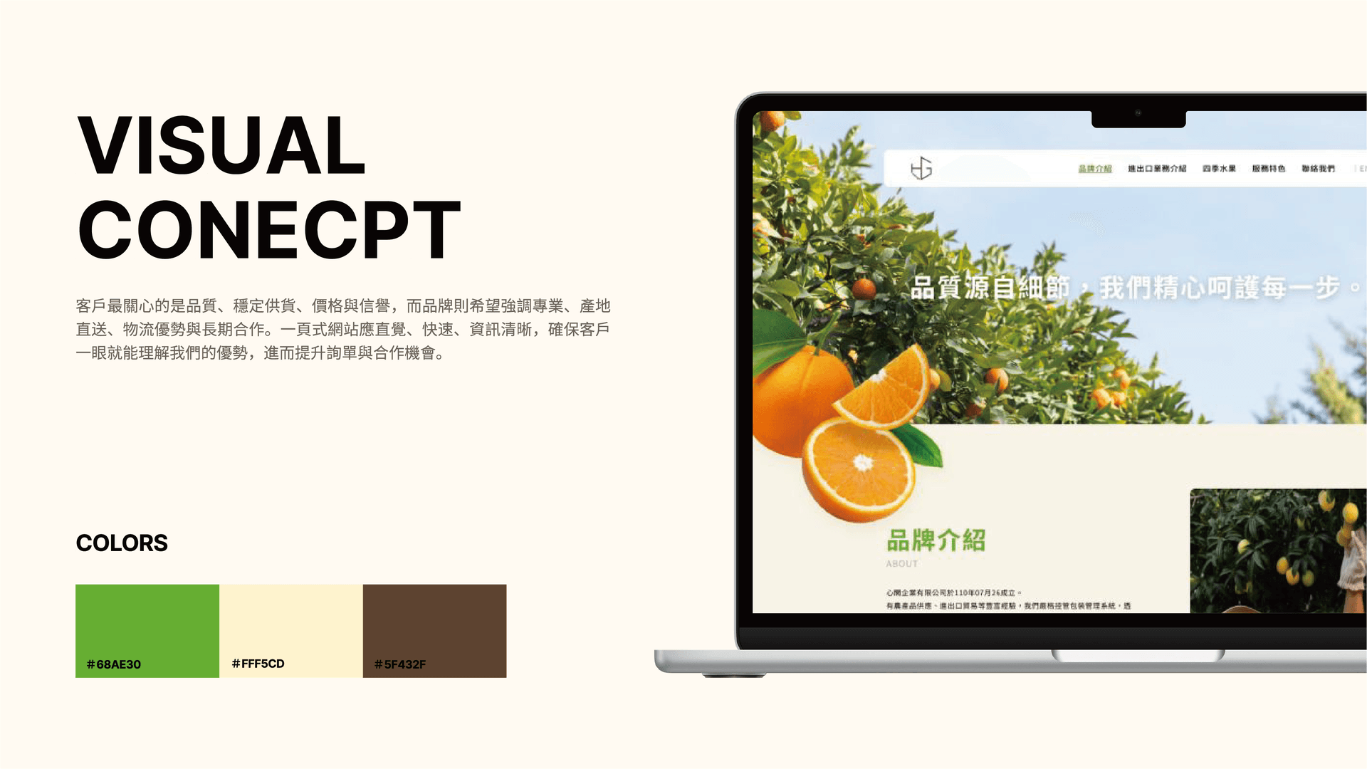 創造一個吸引人且功能完善的平台,讓消費者能夠輕鬆購買到高品質的水果,同時強調心閣企業有限公司的專業和承諾,建立良好的品牌形象和消費者信任。